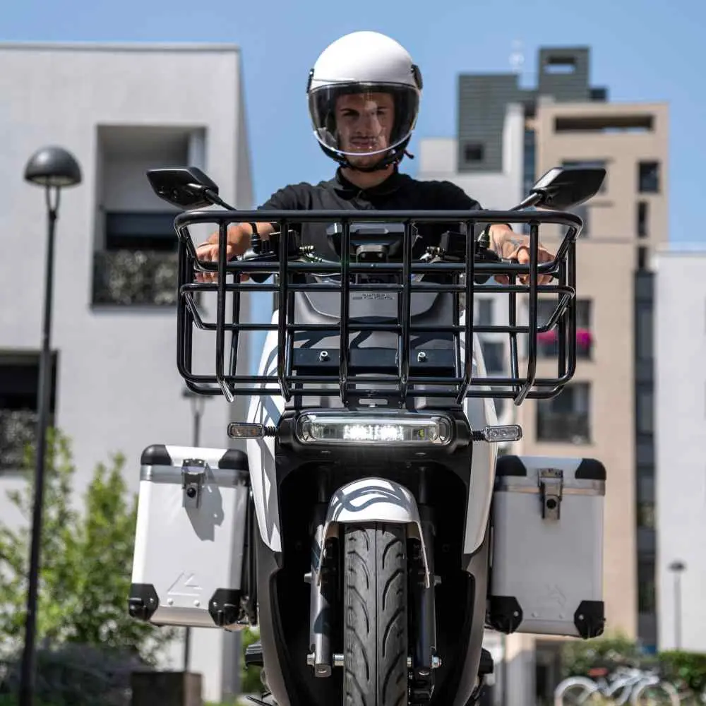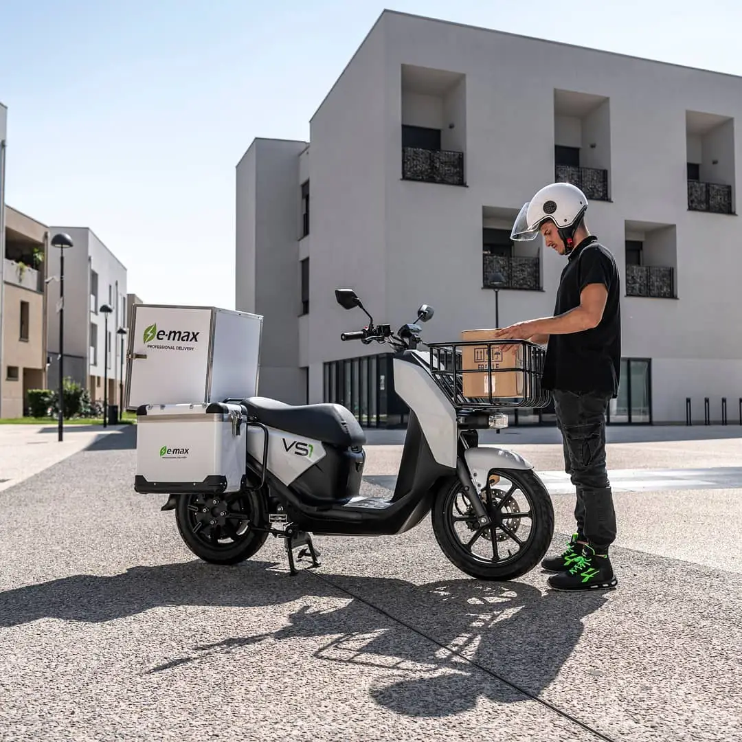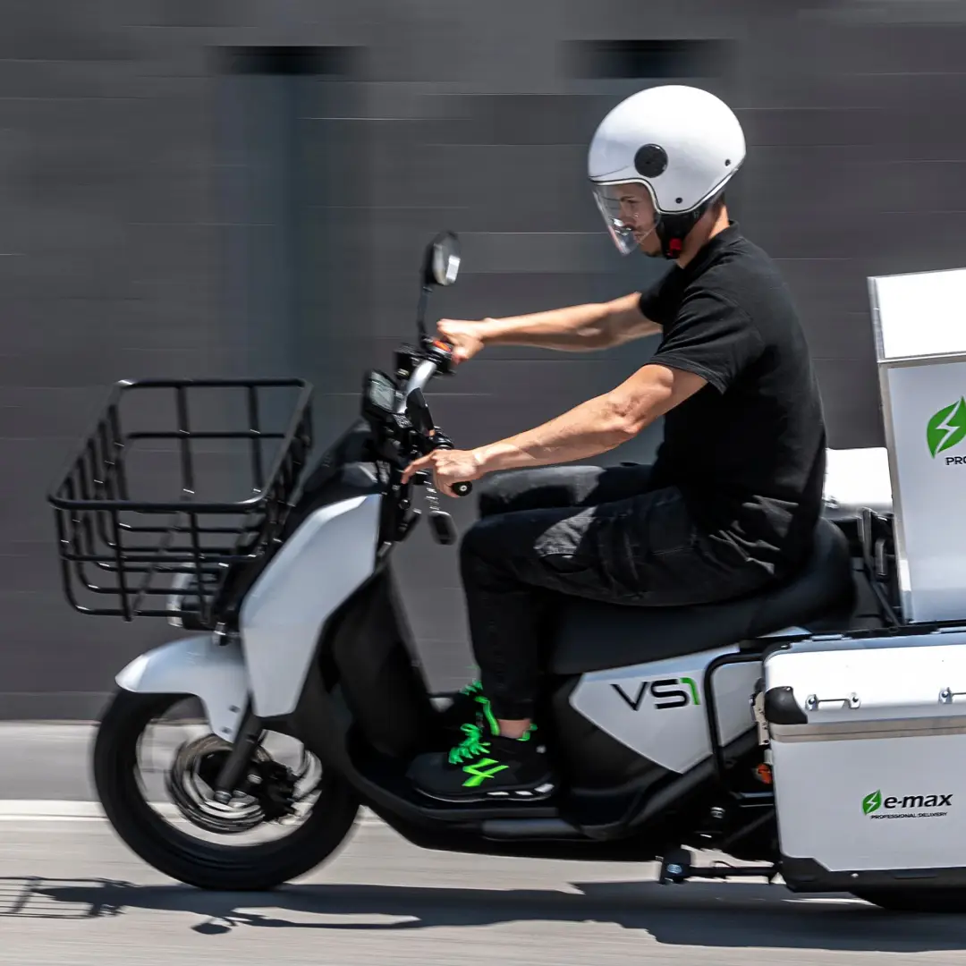 SUPER SOCO VS1 je nákladovo efektívny, ekologický a účinný spôsob dopravy, ktorý poskytuje celý rad výhod pre firmy od donášky jedla cez kuriérske služby až po prepravu v areáli firmy. Vďaka pôsobivému výkonu 4,8 kW, max. rýchlosti až 90 km/h, max. dojazdu s dvoma batériami až 160 km a výnimočným úložným priestorom so zadným boxom, dvoma bočnými boxmi a predným košom, je model VS1 praktickou možnosťou na prepravu.