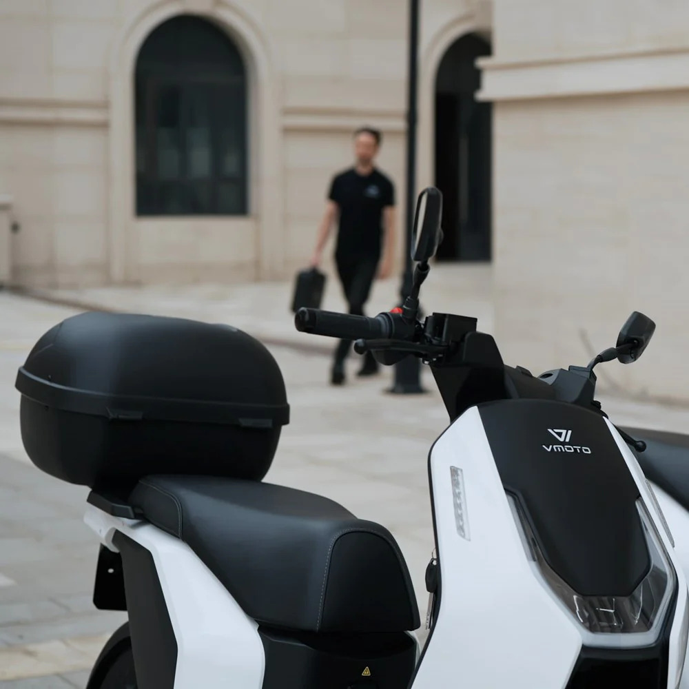 Model Vmoto F01 prechádza zo sveta B2B do sveta širokej verejnosti. Jeho línie navrhnuté výhradne v Taliansku vyjadrujú myšlienku solídnosti, bezpečnosti a pevnosti, vďaka ktorým je tento skúter vlajkovou loďou radu Vmoto.